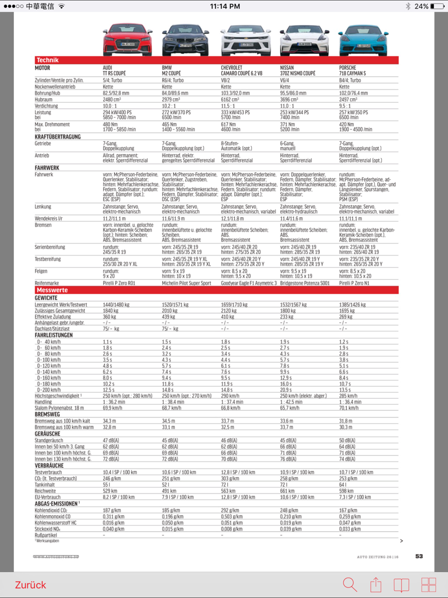 AutoBild Sportscars published 4.2 in their January 2017 comparison with Audi TT RS.